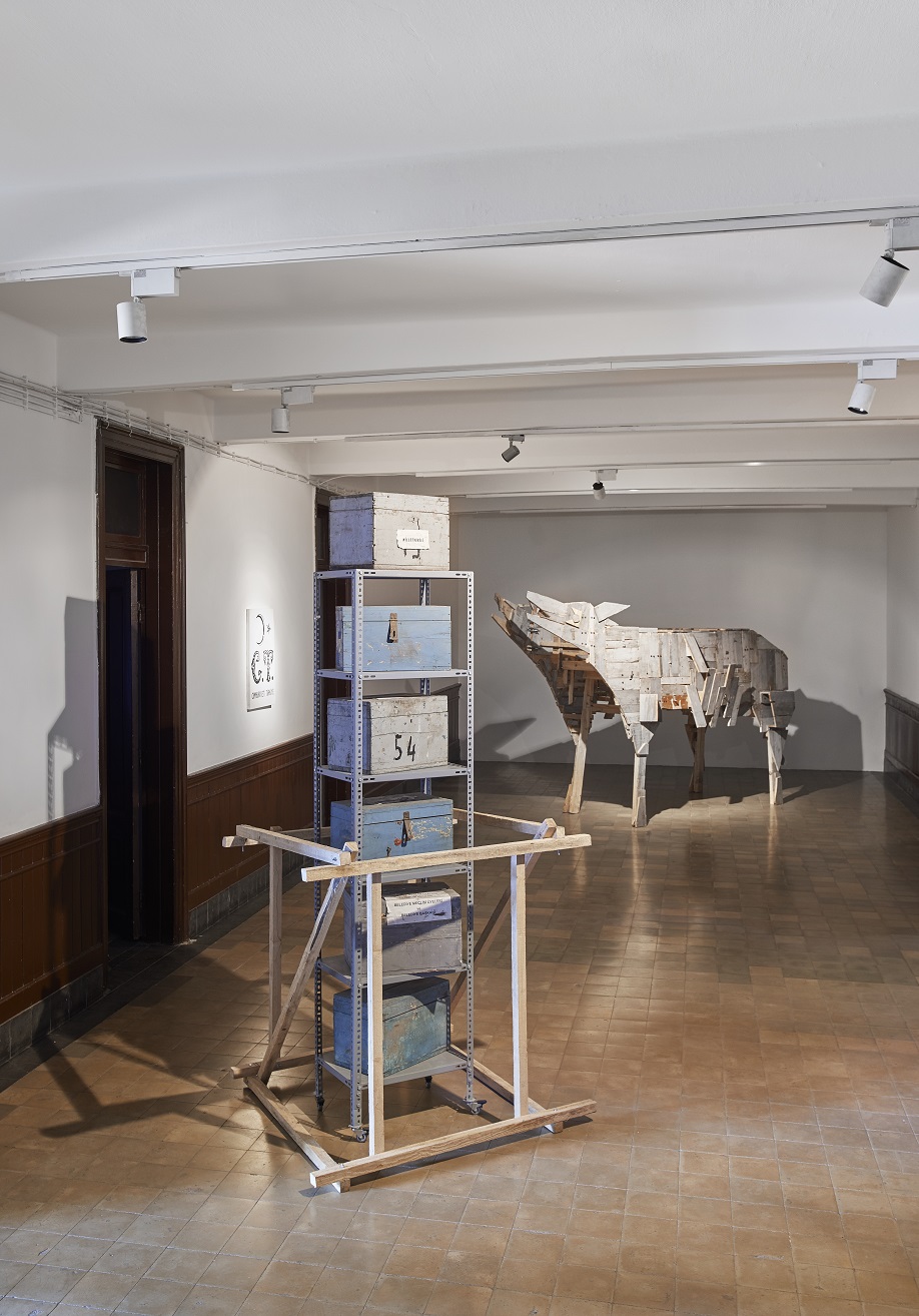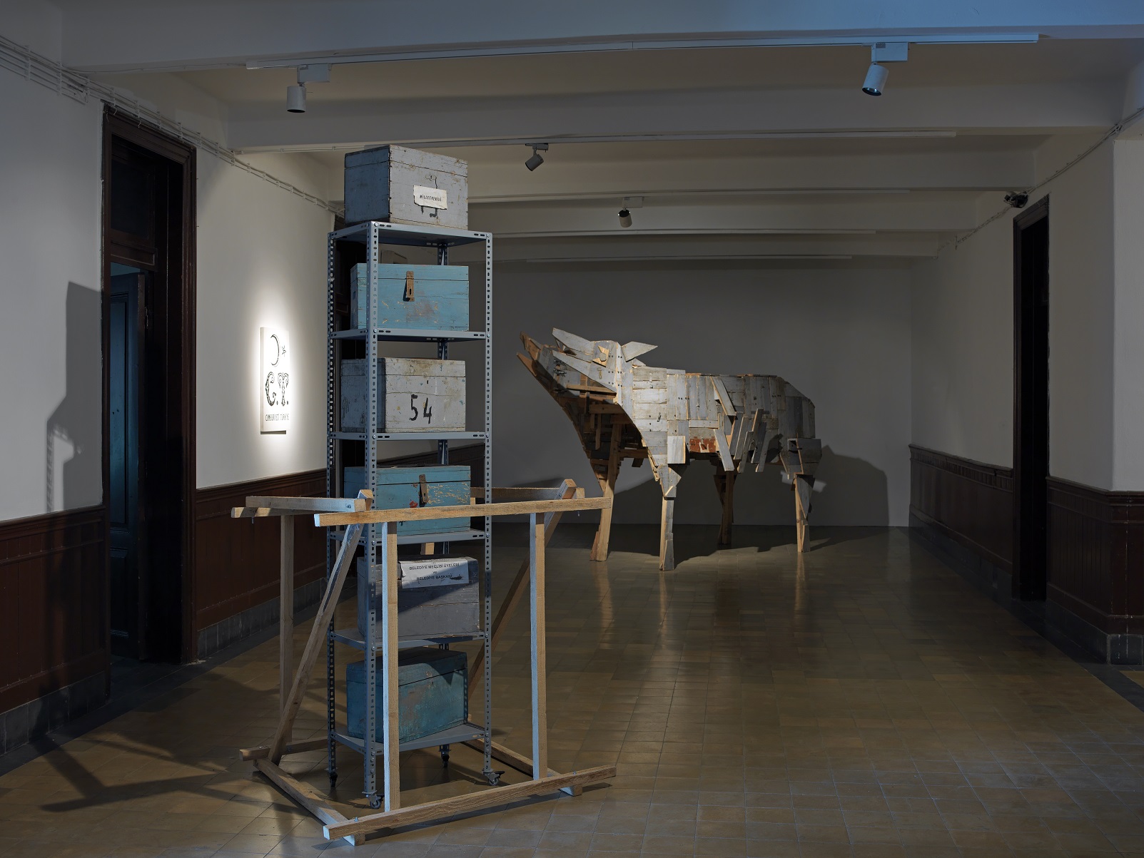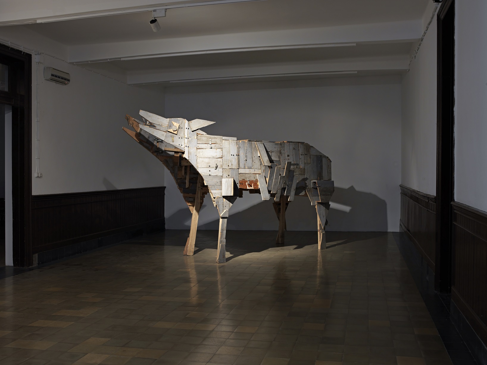 Kurt, 2017, Ahşap seçim sandık parçaları, 483 x 248 x 145 cm